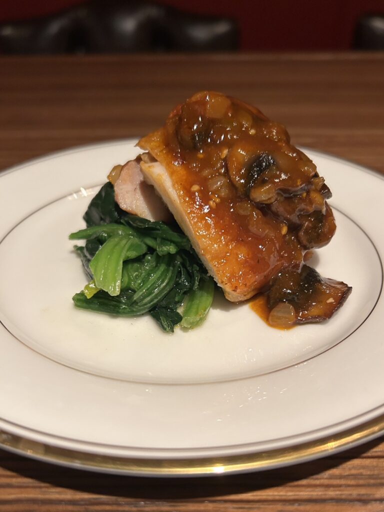 メニューは、鶏もも肉のキノコソース仕立て。